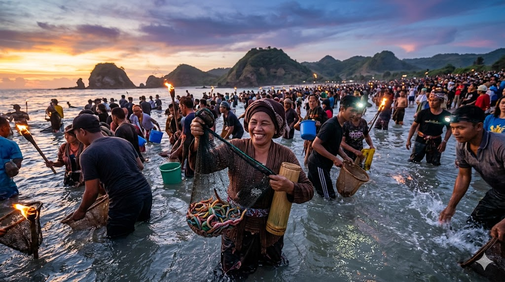 Festival Bau Nyale di Desa Segenter: Legenda Cacing Laut dan Lautan yang Berubah Merah